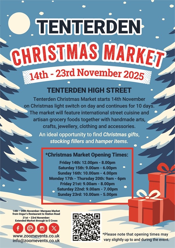 Tenterden Christmas Market starts on 14th November coinciding with the Christmas light switch on.